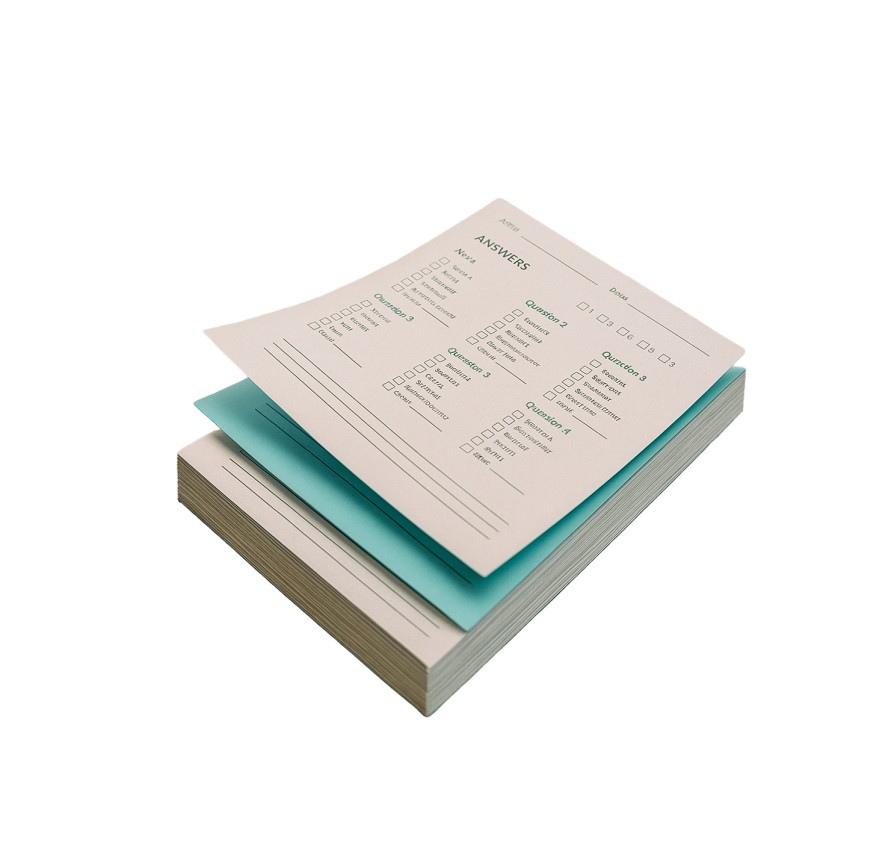 • Primeira via: em papel offset 75g branco, proporcionando excelente qualidade de escrita e impressão, além de boa apresentação visual.